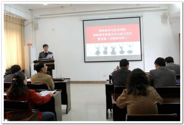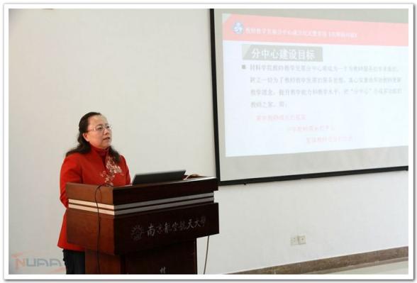 江爱华作了讲话。他指出,材料学院教师教学发展分中心是我校工科类学院中成立的第一个分中心。在我校本科教学优秀工程二期建设关键时期,希望材料学院以学生能力与素质的全面提升为一切教学改革的出发点和落脚点,深入发动教师、依靠教师,认真研究现代教育技术与课程教学的深度融合,在深化人才培养机制改革、研究性教学开展、校本Mooc课程开发等发面先行先试大胆探索,推行新的教育教学理念、新的教学方法、新的考核评价标准,切实提升课堂教学实效,推进教学模式改革。