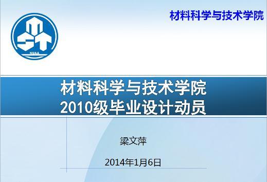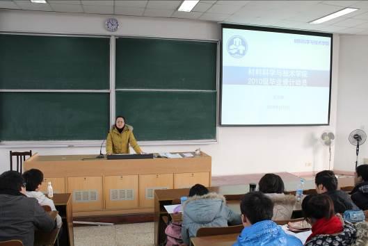 在2014年1月6日,学院教学副院长梁文萍就面向2014届全体毕业生进行了毕设动员。会上,梁院长详细介绍了往年本科生毕设情况,并宣读了学院关于加强本科毕业设计(论文)考核工作的通知(2014届先在材料系试行),公布了今年毕设相关时间节点和具体要求。