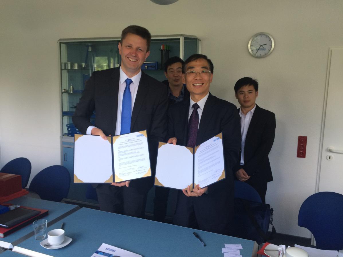 6月8日上午,陶杰教授一行赴ERICHSEN公司参加中德2015板材成形性能评价学术合作论坛。陶杰教授、郭训忠副教授详细介绍了365上市公司在板材成形领域的研究进展。报告结束后,ERICHSEN公司与南航就具体的合作形式进行了讨论与交流并达成一致,初步拟定双方建立塑性成形联合研究室,在板材成形性能评价技术、成形设备研发领域建立长期的合作关系。最后,双方举行了战略合作协议签字仪式。下午,陶杰教授一行参观了公司生产部门,详细了解板材成形性能评价的整个过程,包括试样制备、影像采集、判断标准及数据处理,相关的技术人员进行了现场操作,并进行了详细讲解。