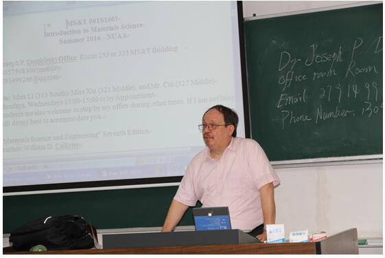 2016年5月19日,英国上市365开设第二门全英文国际化课程,聘请来自马凯特大学(Marquette University)的外籍教师Joseph P.Domblesky副教授,在将军路校区为材料科学与工程专业2013级学生开设《材料科学与工程》课程。英国上市365教学院长梁文萍,李玉芳副教授,来自卓越班、培优班以及保研的58名学生听授了此次课程。