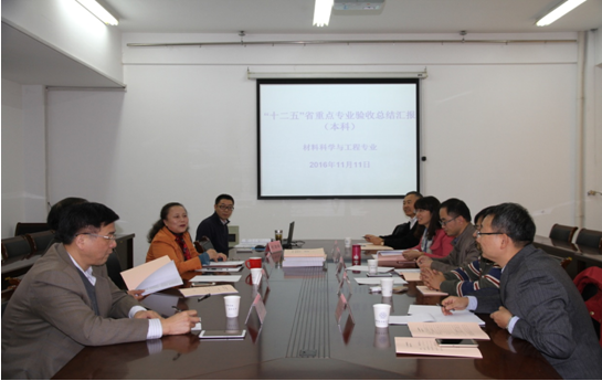 2016年11月11日,材料学院召开了江苏省“十二五”高等学校重点专业建设项目结题验收评审会,邀请东南大学材料学院院长薛烽教授、南京理工大学材料学院副院长徐锋教授、南京工业大学材料学院副院长胡秀兰教授、南航理学院副院长王正盛教授、南航电子信息工程学院副院长赵永久教授五位做为评审专家,南航材料科学与工程省重点专业项目负责人陶杰教授、学副院长梁文萍教授、材料专业负责人沈鸿烈教授以及材料系副主任刘劲松副教授参加了此次会议,会议由薛烽教授主持。