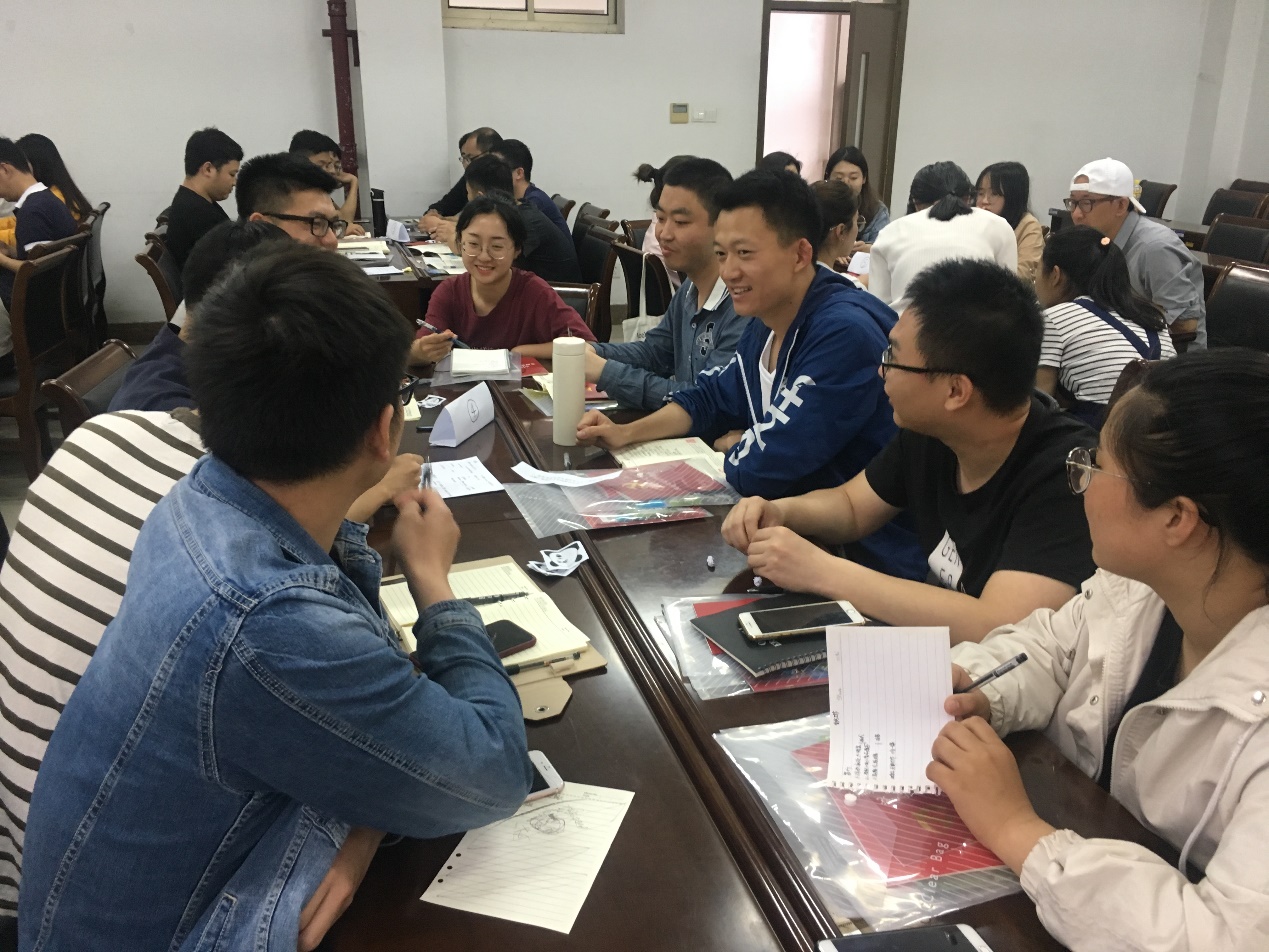 最后,培训会采用“世界咖啡”的形式,对党支部日常工作中遇到的问题和解决对策进行讨论和交流。所有支委分为五组,在限定时间内对五个与党支部工作息息相关的问题进行讨论,如担任支委时遇到的困难、如何创新支部工作的内容和形式等。在紧张热烈的氛围下,大家不仅畅谈工作中遇到的困难,更开拓思维集思广益探讨解决思路。各组代表总结发言时,大家聚精会神地做笔记、受感染,并投票选出总结得最好的代表,学院赠予图书作鼓励。