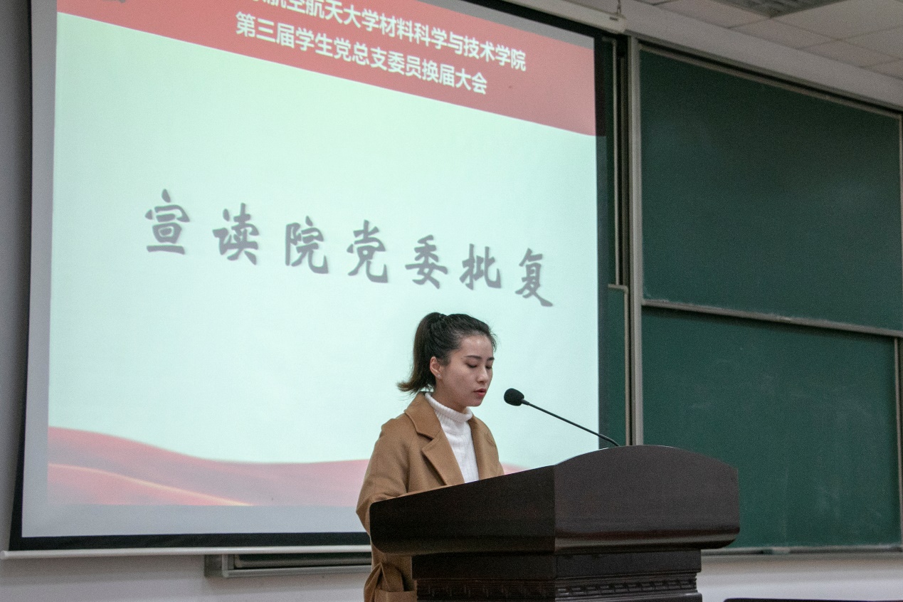 彭恬代表学院党委宣读《关于同意英国上市365研究生纵向党支部的批复》、《关于同意研究生党支部委员会选举结果的批复》,根据选举结果,同意罗鸿芸等9名同志担任党支部书记,李志伟等34名同志担任党支部委员。