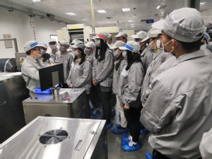 公司领导对我院师生的到来表示热烈欢迎,袁庆梦总经理介绍了公司的基本布局和主要业务,强调锂电池的生产与研发与新能源材料与器件专业联系十分紧密。随后,在袁经理的带领下,全体师生经过严格标准的除尘流程,进入了生产车间,参观了锂电池生产的核心步骤,包括混料,涂布,冷压,卷绕等。企业相关负责人就生产流程向同学们进行了详细的介绍讲解,帮助学生们将课本知识与生产实际结合起来,拓宽了学生的视野。