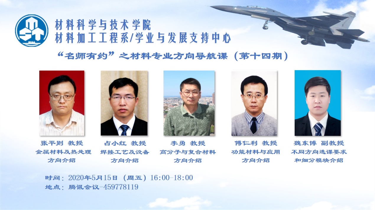 不宁唯是,在5月15日举办的材料科学与工程专业方向导航课上,各专业方向老师分别从不同角度切入,引导学生进一步了解所学专业:张平则老师结合金属材料的发展现状与趋势,向同学们详细介绍了金属材料及热处理方向的专业课程;占小红老师以焊接在航空航天领域的广泛应用为背景,详细论述焊接工艺及设备方向的重要性,打破了同学们对焊接的刻板印象;李勇老师详细介绍了高分子与复合材料的广泛应用,并就新型材料进行了拓展;傅仁利老师则结合柔性电子印刷术、电子芯片等时下热点,对功能材料方向做了详细的阐述。最后,由魏东博老师就学生选课计划和学分修读要求做了进一步说明。