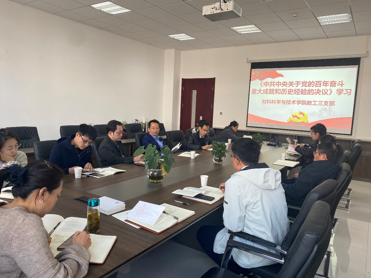 12月10日上午,教工三支部开展党的十九届六中全会决议精神学习,特邀校党委副书记刘宇雷莅临指导。