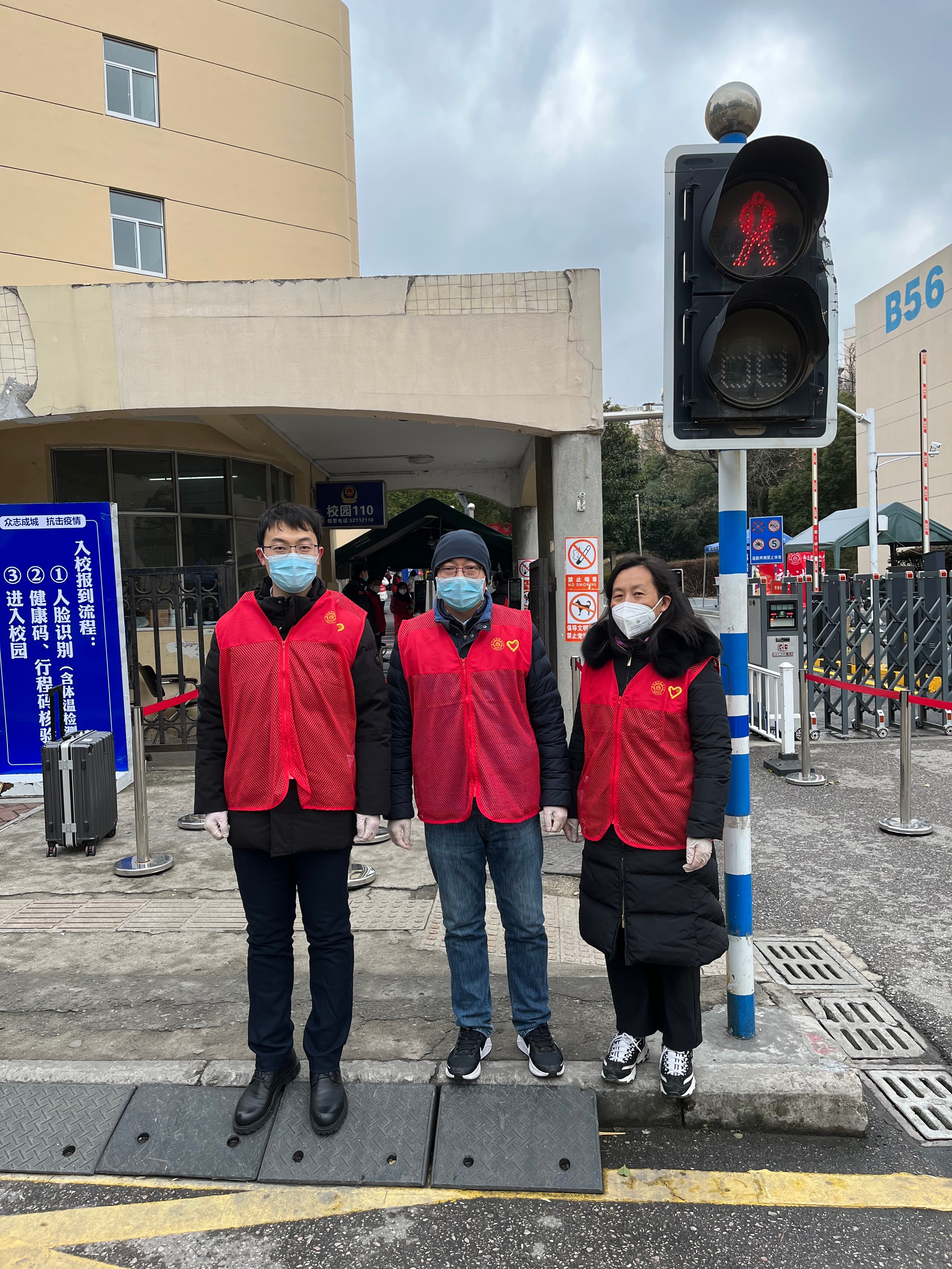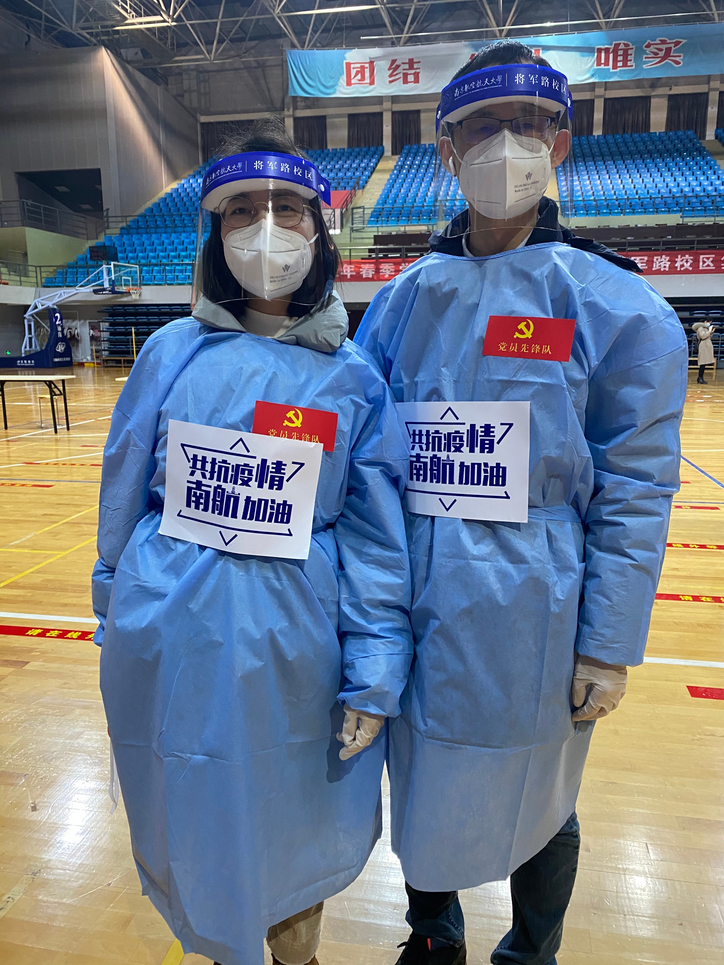 2月18日上午,参加志愿服务的老师们提前抵达体育馆和校门口,在校区管委会工作人员的指导下,穿戴好防护服,各就各位,或是维持秩序,或是引导队伍,或是信息录入,或是物质保障,说的最多的就是“带好口罩,做好个人防护”,“请提前准备好采样码”,做得最多的就是指导帮助一些没有操作过的后勤人员登记信息。蓝色的防护服穿在厚厚的棉服外,志愿者老师们像一只可爱的冰墩墩,亲切地提醒,可爱的模样,让风尘仆仆返校的师生们缓解劳累和压力,寒风中感受家的温暖。志愿者老师们用满腔热忱为返校学生安全有序核酸检测保驾护航,用实际行动诠释新时期的“四有”好教师的仁爱之心和责任担当。