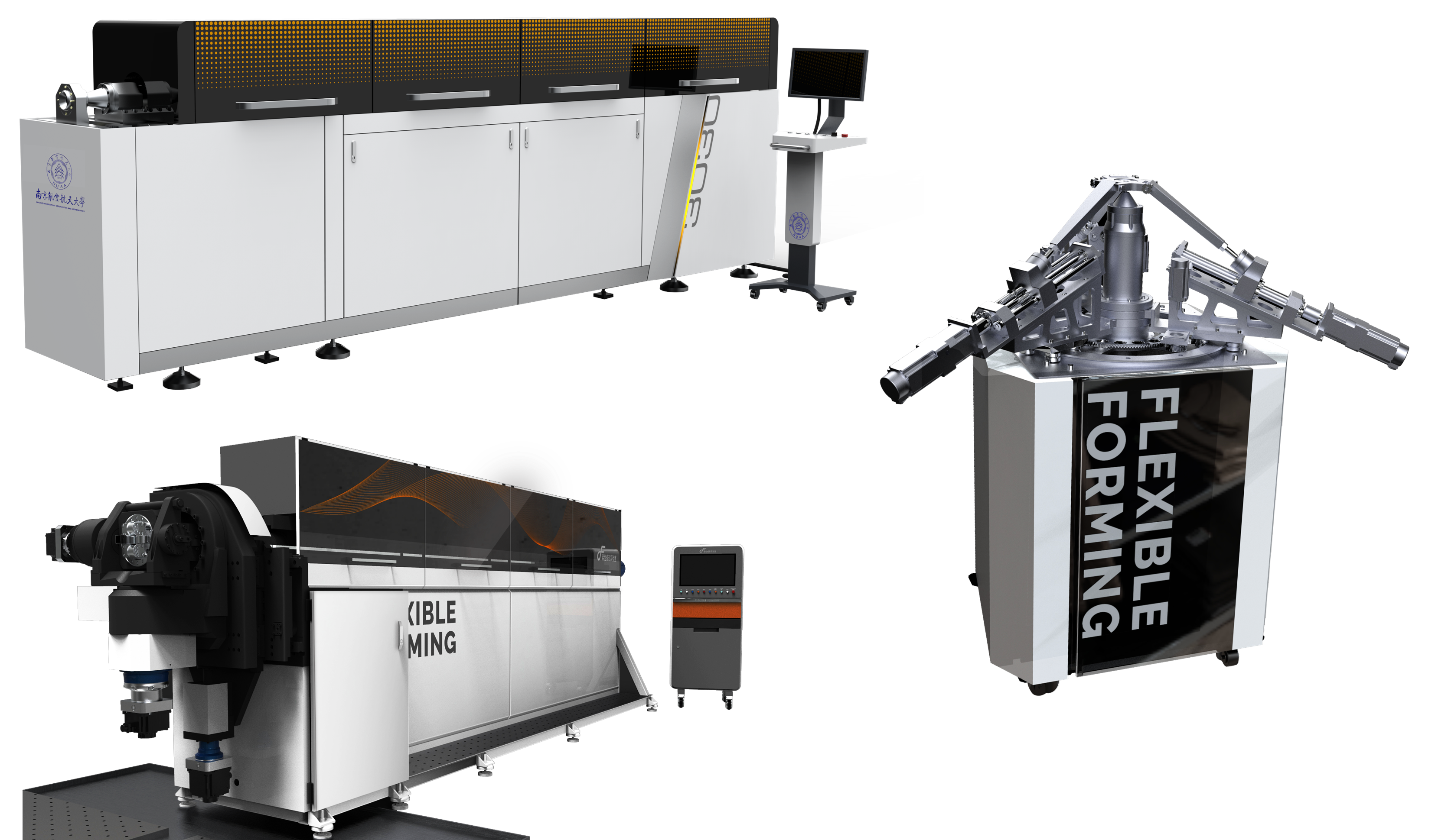 365上市公司柔性成形技术及装备团队长期立足于国家在航空航天、核能工程、汽车工程等方面的重大需求,在关键制造技术及装备研发方面取得了丰硕的科研成果。团队在国家相关重点、重大项目支持下,先后突破了长寿命陶瓷内衬模具制造关键技术、多轴联动精准控制与工艺解析关键技术及在线自适应纠偏关键技术。自主研发了国内首台六自由度管/型材自由弯扭复合成形装备、七轴联动并联机构自由弯曲成形装备、移动式/轻量化战时军机关键构件快速柔性成形装备,在总体构型、自由度以及综合功能方面不断优化和提升,为航空航天工程应用提供了重要支撑。
