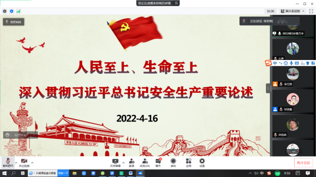 首先,院长张校刚带领大家观看《生命重于泰山——学习习近平总书记关于安全生产重要论述》电视专题片,回顾党的十八大以来,习近平总书记关于安全生产的重要论述。他指出,专题片全面阐释了习近平总书记关于安全生产重要论述,既有权威解读又有案例分析,素材丰富、剖析深刻,令人警醒、深受触动,是学习贯彻习近平总书记重要论述的生动辅导,对于教育引导我院师生牢固树立安全发展理念,师生发挥主动意识,扎实做好安全生产各项工作具有重要意义。他强调,学院要结合实验室每日一查情况,深刻剖析实验室存在安全隐患,切实把联学成果转化为学院应对风险挑战、确保安全稳定的实际成效,提出防范措施,坚决抓好防风险、保安全、护稳定各项工作。