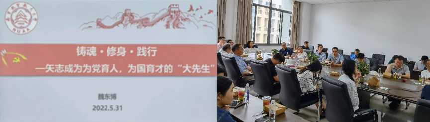 然后,系支部纪委委员魏东博老师做了《铸魂·修身·践行,矢志成为为党育人、为国育才的“大先生”》的理论学习领学。结合习近平总书记的重要讲话精神,与支部老师共同学习了关于从有理想信念、有道德情操、有扎实知识、有仁爱之心的好老师到塑造学生品格、品行、品味的“大先生”的时代精神,基本素养和实践路径。会上号召支部老师们既要做学问之师,更要做品行之师,不断追求“经师”与“人师”的高度统一,努力成为“为党育人、为国育才”的“大先生”,为党和国家培养“双碳”人才,为把我校建设成为中国特色世界一流的高水平研究型大学努力奋斗。