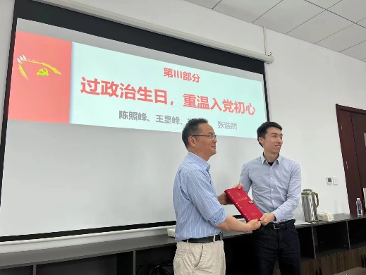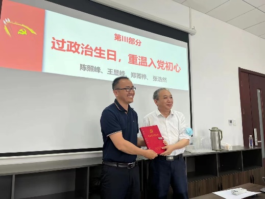 最后,支部组织委员林开杰和宣传委员王磊磊老师共同策划开展了《过政治生日,重温入党初心》的主题活动。支部为四位五月份入党的党员定制了个性化的纪念品,并且邀请支部的优秀党员代表送上这份生日礼物。四位党员做了入党初心分享,回顾了成长历程,坚定了“为党育人”的初心使命。与会党员们开展了深入交流研讨,一致认为记住自己的“政治生日”,是对党的热爱与忠诚,要时刻铭记从哪里来、到哪里去、为何出发、如何抵达。这次活动也是支部落实开展学院“凝心赋能”提升治理能力揭榜挂帅项目的重要举措,满载着学院党委及系党支部对党员的关心和希望,进一步引导广大党员强化身份意识、宗旨意识和责任意识,增强支部的号召力,凝聚力、战斗力`。