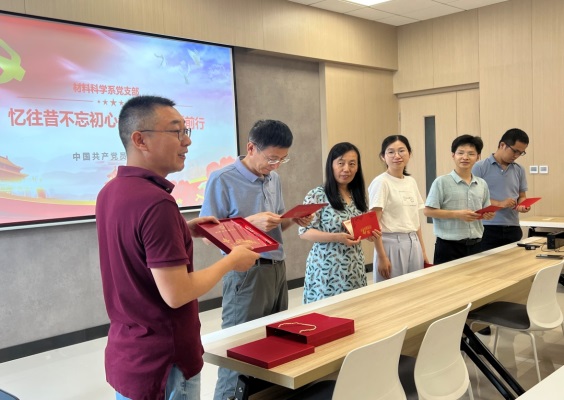 最后,党支部组织开展了《忆往昔不忘初心,展未来砥砺前行》的党员政治生日主题活动。党支部为五月份至七月份入党的党员定制了政治生日贺卡和特殊纪念品,并一起重温了入党誓词。这次活动是在学院党委的大力支持下,材料科学系党支部对学院“凝心赋能”提升治理能力揭榜挂帅项目的落实,其目的在于引导广大党员同志们时刻不忘党员“第一身份”,在工作、学习中充分发挥先锋模范作用。