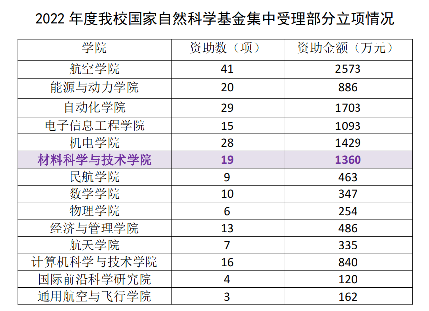 近日,国家自然科学基金委员会公布了2022年度集中受理项目评审结果,在学校、学院及各位申请老师的共同努力下,我院2022年国家自然科学基金集中受理立项取得新突破,创历年同期立项数新高,达到19项,包括顾冬冬教授获得的国家杰出青年科学基金项目1项、重点国际(地区)合作研究项目1项、面上项目8项、青年科学基金项目9项,其中工程与材料科学部9项、化学科学部3项、数理科学部7项,总资助直接经费1360万元。
