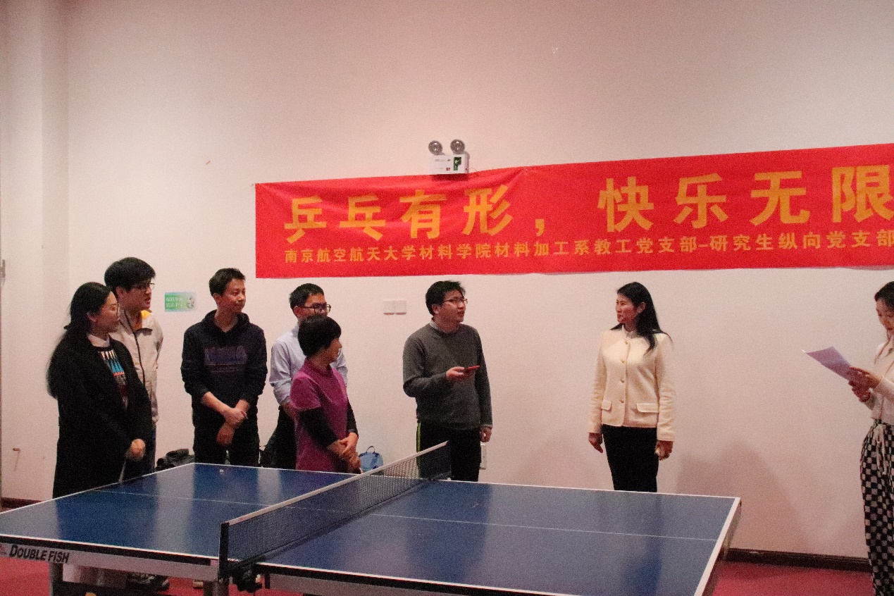 为进一步丰富校园文化生活,营造百花齐放的校园文化氛围,加强师生间的相互交流,材料加工工程系教工党支部与研究生纵向党支部于4月7日联合举办“乒乓有形,快乐无限”乒乓球联谊赛。材料学院副院长刘周成、院党委副书记庄晓舒、材料加工工程系教职工党支部教师党员代表、以及加工系研究生纵向党支部部分学生参加了本次活动。