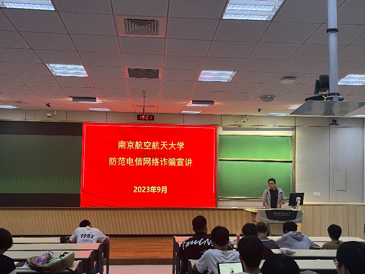 学院邀请到保卫处治安科科长黄超峰为同学们进行防诈骗宣讲。黄超峰从诈骗大数据切入,向同学们介绍了常见诈骗套路,重点围绕“冒充熟人”“冒充网购客服”“冒充银行客服”“裸聊诈骗勒索”等类型进行案例讲解,帮助同学们培养安全防范意识、提高自我保护能力。