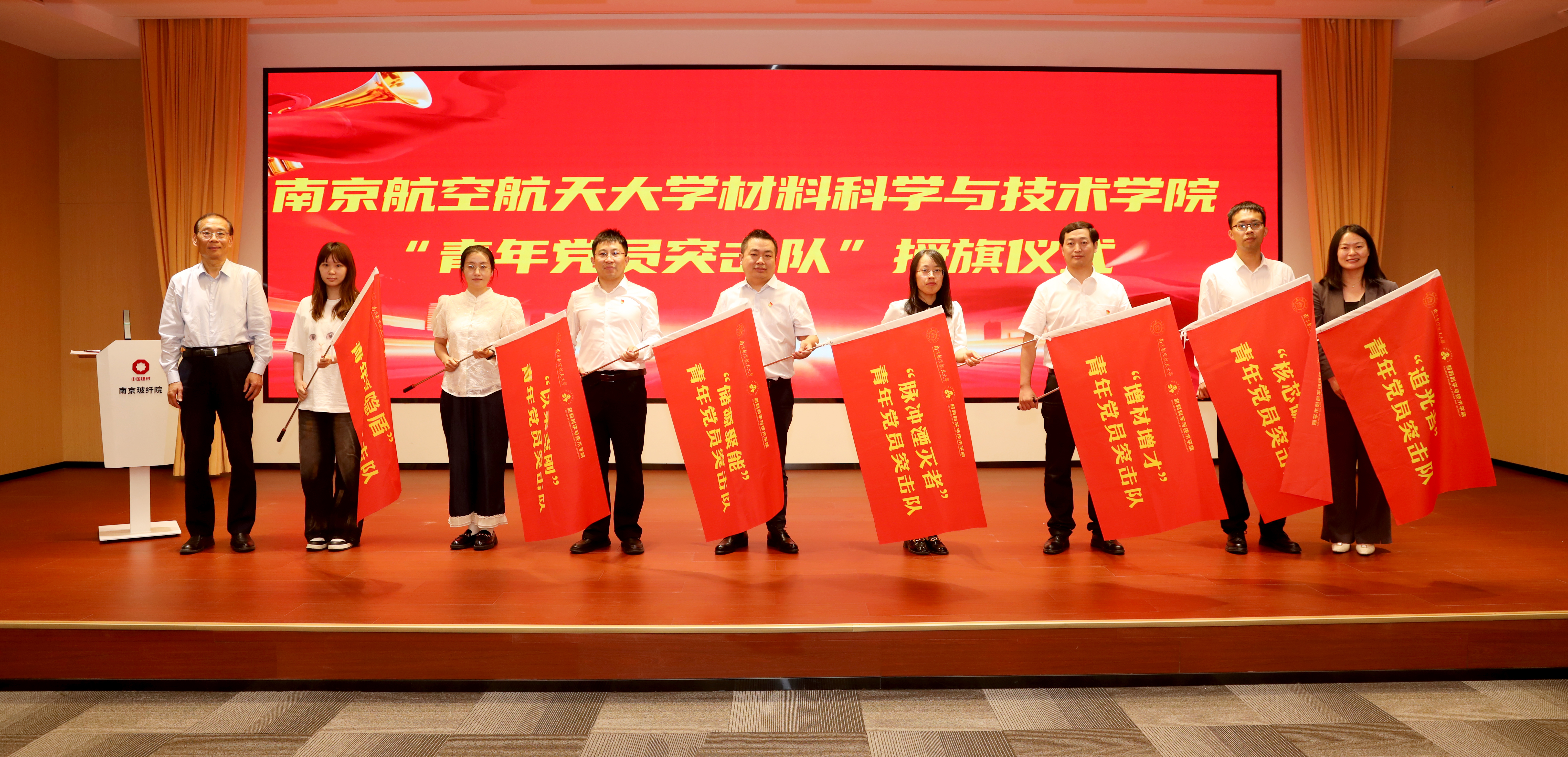 为进一步凝聚力量开展应用基础研究和突破关键核心技术,南京玻纤院为党员突击队进行授旗。突击队扛大旗、担重任、当好科研攻关的“尖刀连”,目前已成为南京玻纤院创新中心等党支部科研、生产主战场上的常态,全面促进党建工作与科研项目攻关的深度融合。为深入践行“为党育英才、为国铸重器”的光荣使命,充分发挥青年党员在立德树人、科研攻关中的模范带头作用,南航材料学院为学院青年教师党员突击队授旗,坚持以党建引领人才培养和科研攻坚,让党旗飘扬在育人育才和科技创新最前沿。