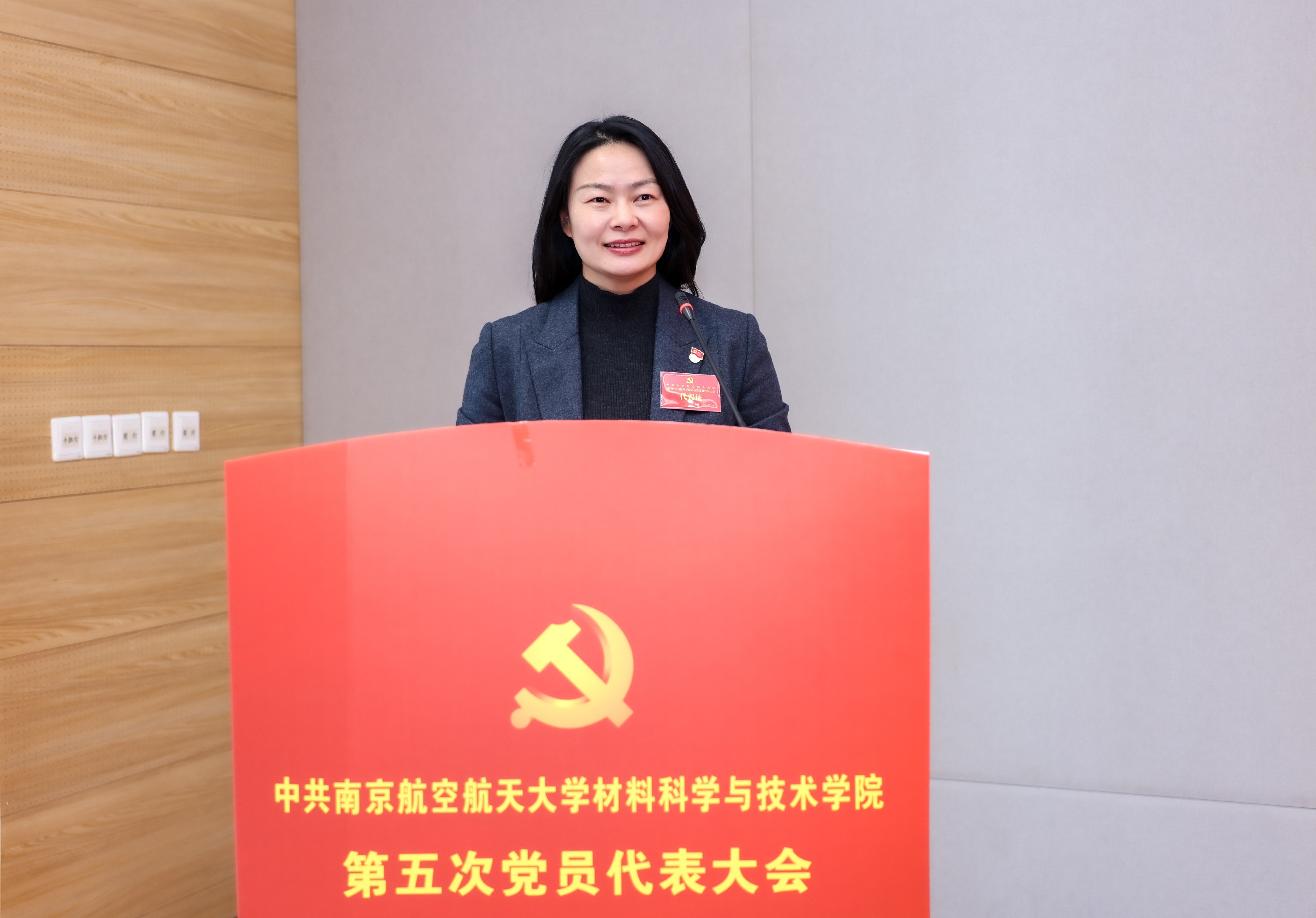 徐正扬代表学校党委向大会的召开表示热烈祝贺,对过去六年学院党委取得的成绩给予充分肯定。他希望学院党委以本次大会为新起点,深入学习贯彻习近平总书记致南航建校70周年重要勉励精神,在学校党委的坚强领导下,抢抓机遇、乘势而上,在支撑学校世界一流大学建设、服务国家重大战略需求的新征程上取得更高质量的发展。他同时对学院今后的工作提出三点希望:一是坚持党建领航,筑牢高质量发展坚实根基,在“把方向”上体现更高站位,在“强根基”上拿出更实举措,在“聚合力”上激发更强动能。二是瞄准重大需求,勇担材料强国时代使命,要有“三航急需”“国防急需”“时代急需”的响应度,强化顶层设计,优化学科布局,坚持“四个面向”,统筹前沿探索,在国家重大需求与关键技术突破中勇挑重担。三是抢抓发展机遇,创建人才荟萃一流学院,进一步提高拔尖创新人才培养质量,进一步加强师资队伍建设力度,进一步优化人才成长环境,为国家重大工程和产业发展提供人才支撑。