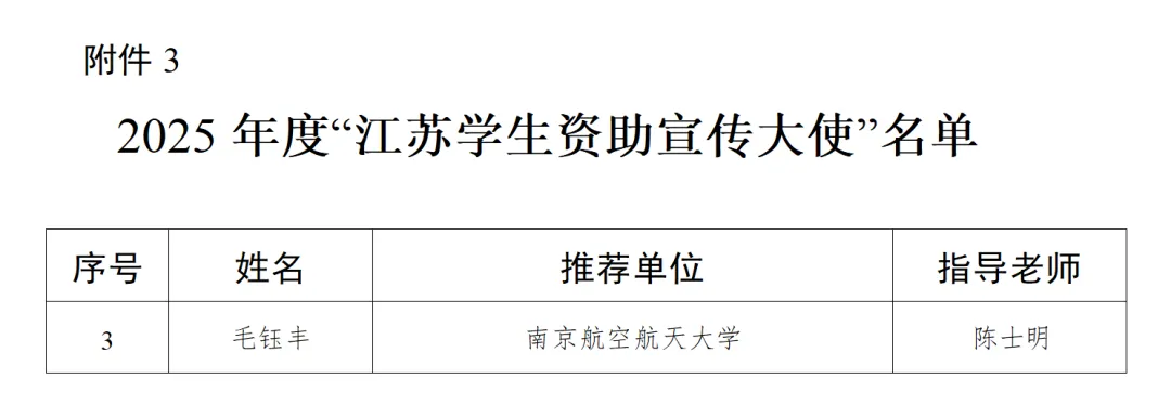 江苏学生资助宣传大使 毛钰丰